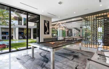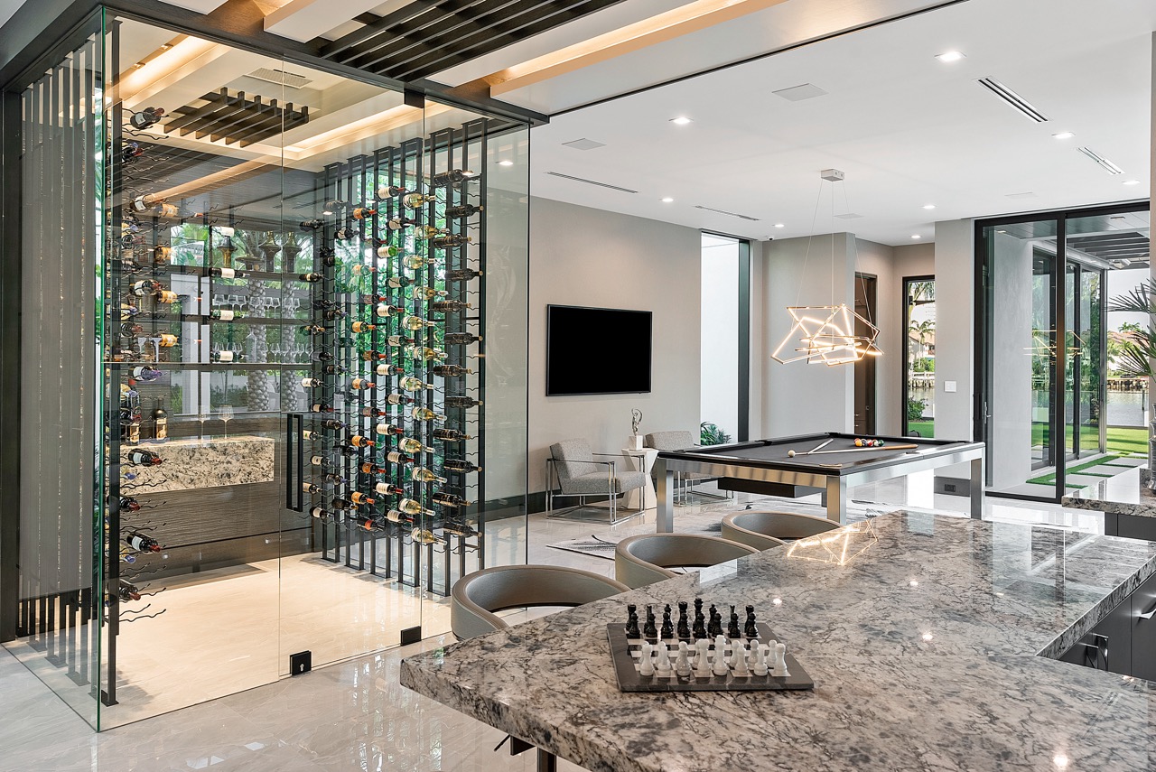In this exquisite estate, technology seamlessly intertwines with opulence, offering unparalleled convenience and luxury at every turn. The entire property is controlled by Creston, employing an array of remotes, tablets, and keypads to provide seamless control, while also allowing homeowners to utilize their personal devices for added convenience.